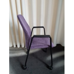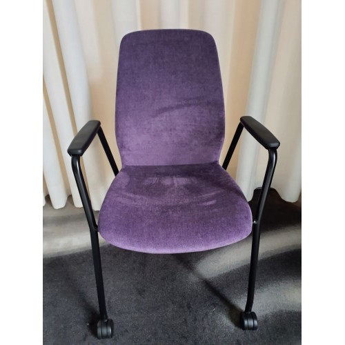 Podstawa metalowa w kolorze czarnym, na kółkach, Podłokietniki czarne. Tapicerka Velvety kolor 6242 fioletowy.